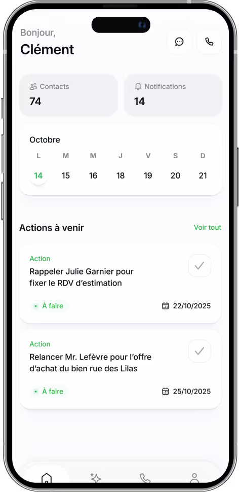 Demandez lui avec un simple vocal : “Qui dois-je relancer aujourd’hui ?” En quelques secondes, Leedflow analyse votre base et vous dit exactement qui et comment relancer pour maximiser vos chances de décrocher un mandat.